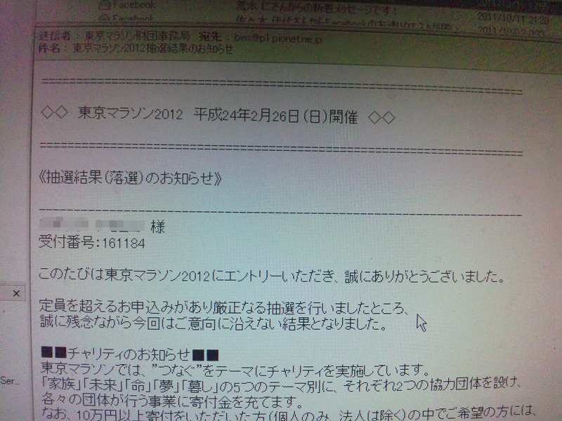 そして昨日抽選結果がメールで届いた